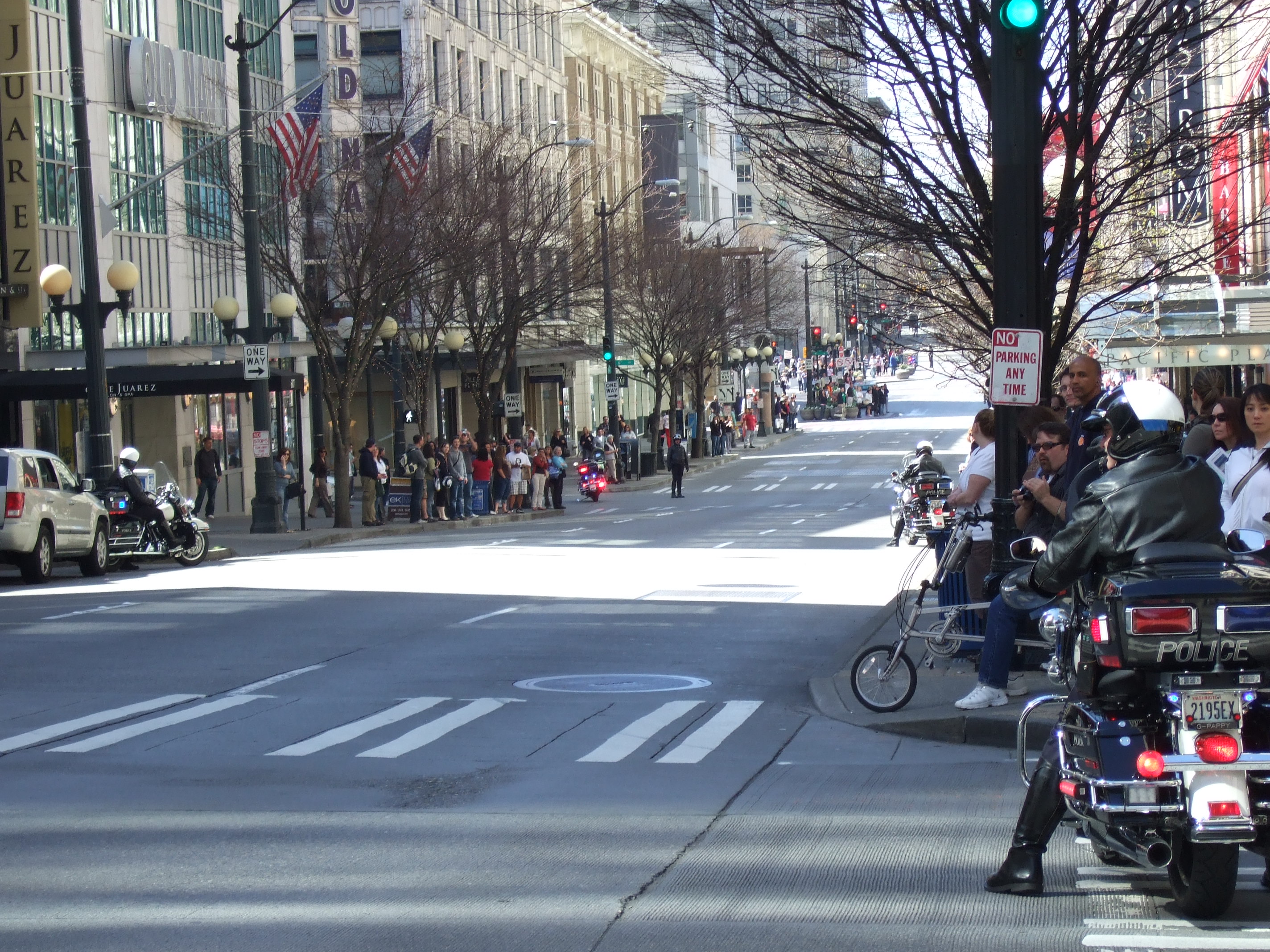 Street protected by police before the Dalai Lama passed through.