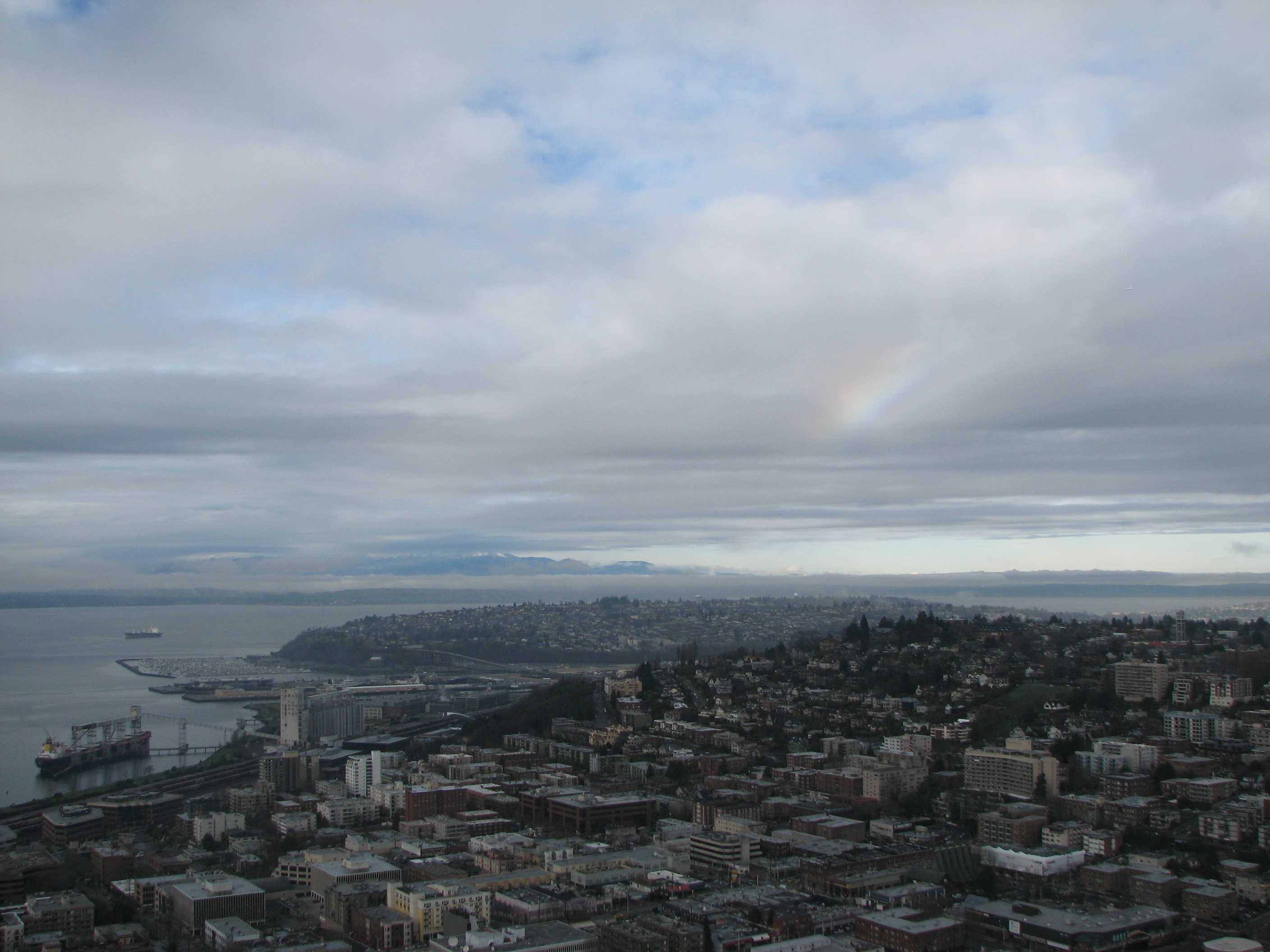 Looking northwest with partial rainbow in the clouds
